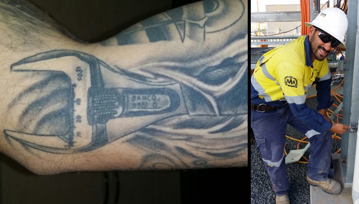 Lewis Heperi is a plumber and gasfitter on the Gold Coast, Queensland, Australia. A little over a year ago, he decided to go “Bahco for life” – more precisely with a Bahco ERGO™ 9031 Adjustable Wrench that he had tattooed on his arm!